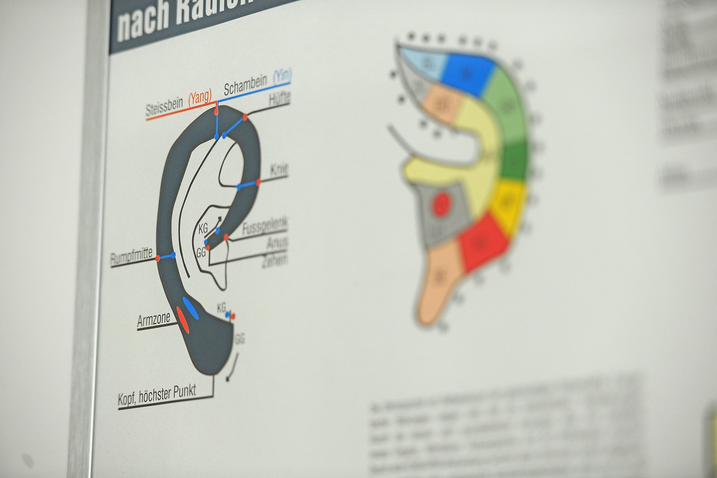Die Befunderhebung erfolgt über das Ohr, welches den gesamten Organismus abbildet. Mit Hilfe eines Therapiestäbchens wird das ganze Ohr auf sensible Punkte abgetastet. So kann ermittelt werden, wo eine energetische Störung vorliegt; darauf basierend wird die passende Behandlungsstrategie gewählt.